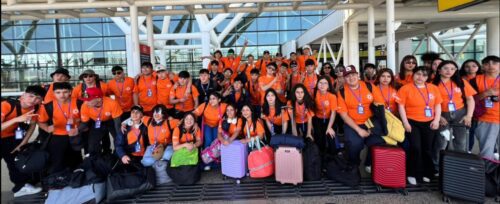 Agradecidos por la bendición entregada por el Padre Edito, nuestra delegación —compuesta por 49 estudiantes y 6 funcionarios— inicia su viaje rumbo al aeropuerto de